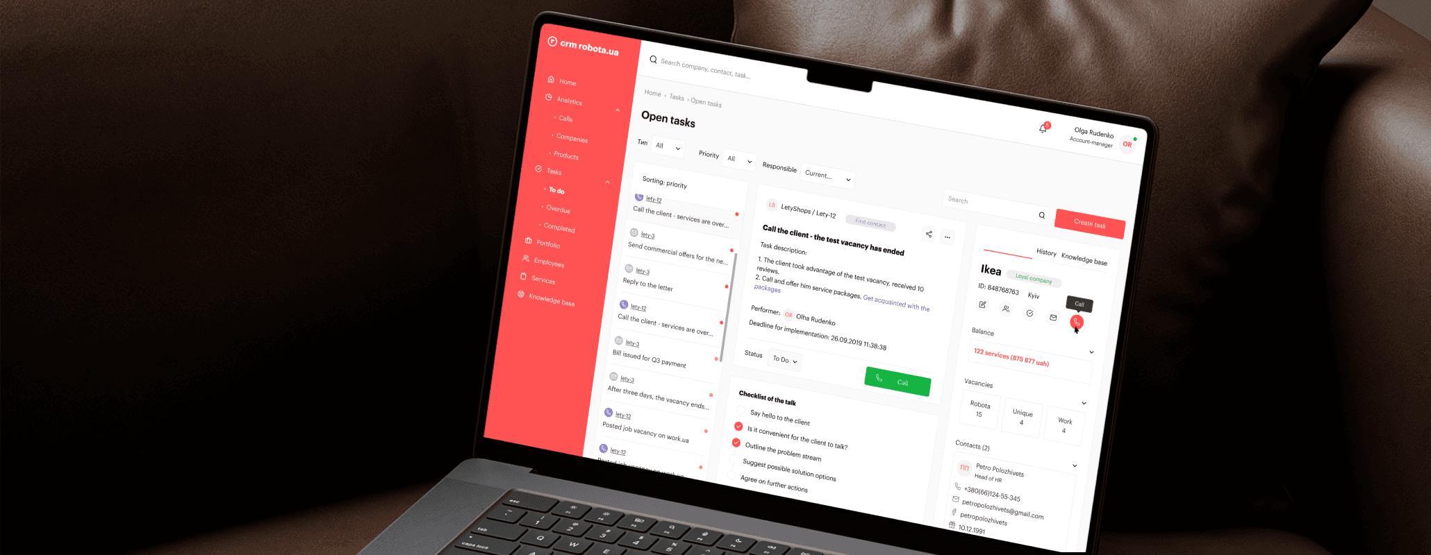 Led end-to-end CRM design for Robota.ua, streamlining complex sales workflows to support 100K+ active job vacancies.